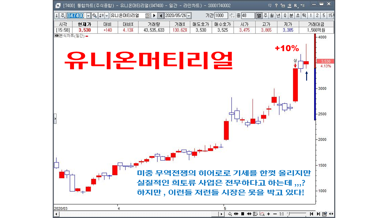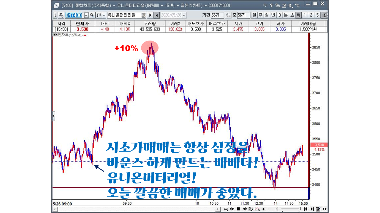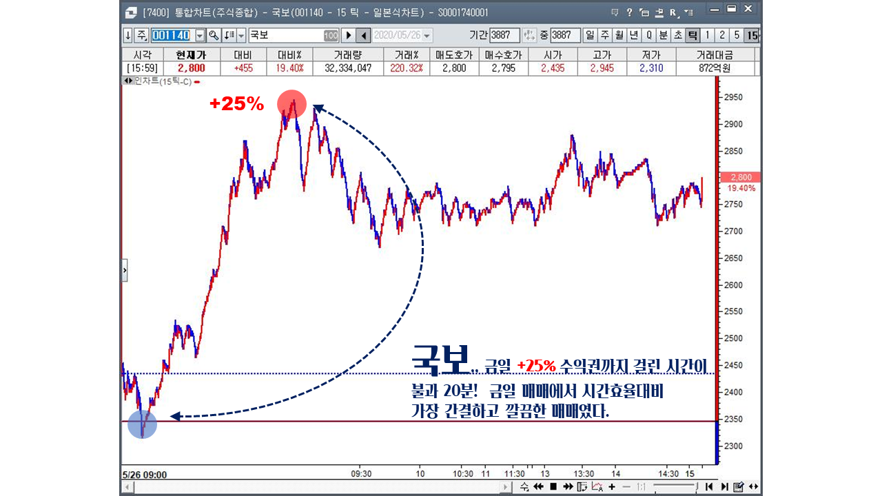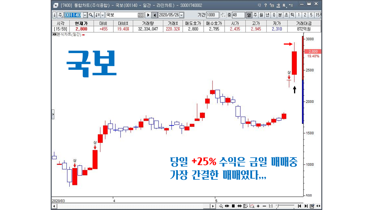 5월이 싸리문을 열고 나갈 준비를 하는 월말로 접어든 시점이다 , 시장의 흐름은 그날 그날의 이슈의 흐름에 수급이 옮겨다니는 각개전투 시장이 이어지고 있고 아주 강하지 못한 재료주라면 이틀 이상 기세를 이어가지 못하는 전형적인 월말 시장의 흐름을 보이고 있다. 매달 매달 수많은 이슈재료주 , 기술주들과 씨름을 하다보면 어느새 한달이 훌쩍 ~흘러간다! 세월은 어찌 이리 빗살처럼 빠른지 아마도 속도전 트레이딩에서 가장 고수를 꼽으라면 ,,, 아마도 난 이 세월과 시간이라는 놈에게 한표를 주지 않을까 싶다. 급등주 매매는 많은 집중력과 순간의 판단력 , 시장의 판세를 읽는 여러가지 능력들이 동원이 되어야 하는데! 공부를 오래동안 하여도 항상 부족함이 느껴지는것은 아직도 배움의 잔이 채워지지 않아서 그러리라 본다~ 내일도 시장은 열릴것이다,,현명한 매매를 하기를,,